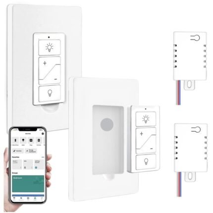 Nexete Smart Wireless Light Switch, Dimmer Switch & Receiver Kit No Wiring Wireless Remote Control,Remote & Voice Control,Bluetooth Work with Amazon Alexa Only ETL certified (2 Switches & 2 Receivers)