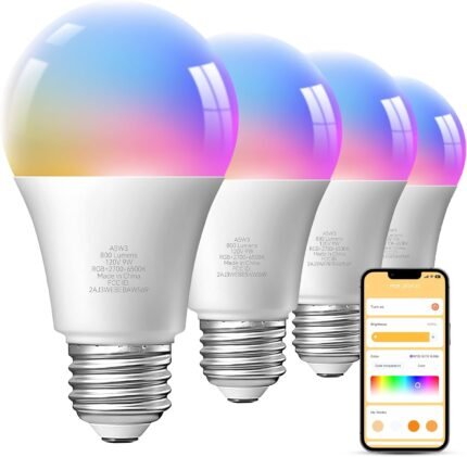 TJOY 4 Pack Smart Light Bulbs, Bluetooth WiFi Led Bulb Work with Alexa &Google Assistant, RGB Color Changing Alexa Bulbs, Music Sync, 2700K-6500K, 9W(60W Equivalent), A19 E26 800LM, 2.4Ghz WiFi only