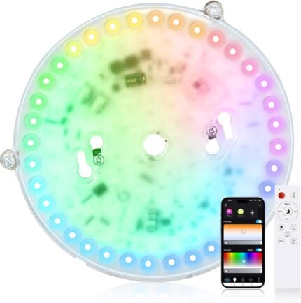 Ledytech Smart Ceiling Light Replacement Kit, RGB LED Ceiling Fan Light Retrofit Kit, 1800LM, DIY Color, Compatible with Alexa, 2700K-6500K for Bedroom, Living Room, 7 Inch, 120V, ETL