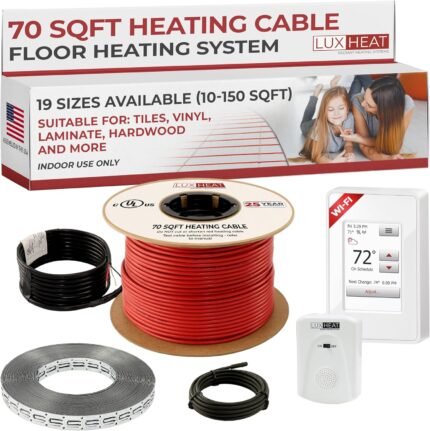 LuxHeat 70sqft Floor Heating Cable Kit – 120v Underfloor Heating System – Heated Flooring System Includes UWG4 WiFi Programmable Thermostat w/GFCI, Heated Floor Cable, Strapping, Sensor & Alarm