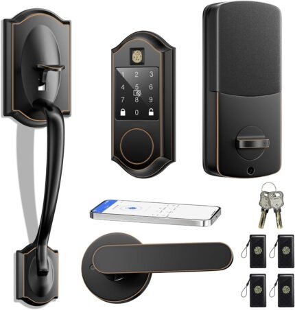 Fingerprint Smart Lock & Front Door Handle Set, Keyless Entry Door Lock with Handle, Auto-Lock, Smart Front Door Lock Set, Bluetooth APP Control, Touchscreen Keypad, Easy Install, Oil Rubbed Bronze