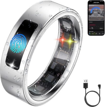 Smart Health Ring for Women Men, Vibration Alert, Touch Control, Fitness Tracker Ring with Sleep/Women’s Health/Heart Rate/Steps, IP68 Waterproof for iPhone and Android, Silver 11,No Subscription