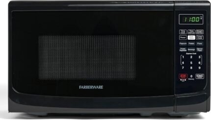 Farberware 0.7 Cu. Ft. Countertop Microwave Oven – 700 Watts Power, Auto Cook Settings, Defrost, Easy Clean and Child Safety Lock – Black
