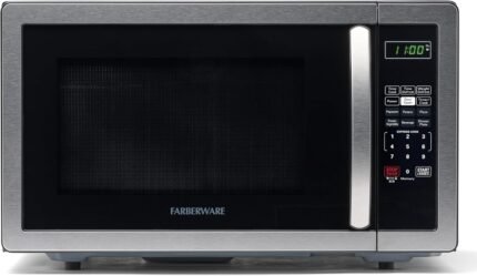 Farberware 1.1 Cu. Ft. Countertop Microwave Oven – 1000 Watts Power, Auto Cook Settings, Defrost, Easy Clean and Child Safety Lock – Stainless