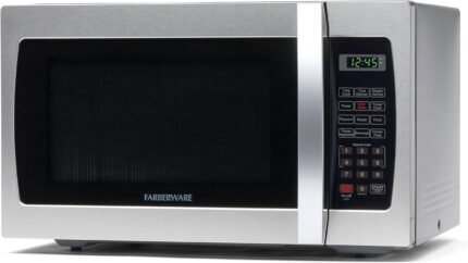 Farberware 1.3 Cu. Ft. Countertop Microwave Oven – 1000 Watts Power, Auto Cook Settings, Defrost, Easy Clean and Child Safety Lock – Stainless