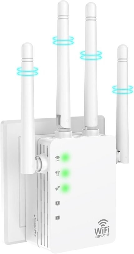 WiFi Extender Signal Booster,WiFi Extender, 5G WiFi Booster (Up to 10000sq. ft for 55+ Devices), WiFi Repeater with 4 Antennas 360° Coverage, WPS 1-Tap Setup with Dual Band 1200Mbps (White)