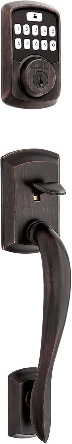 Kwikset Aura Bluetooth Keyless Deadbolt with Avalon Entry Handleset, Electronic Keypad Lock, Auto Door Lock, SmartKey Re-Key Security, Venetian Bronze