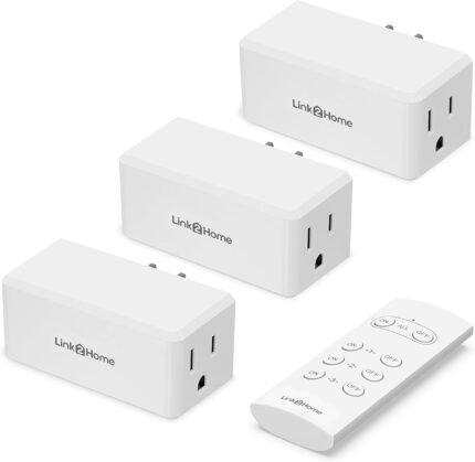 Link2Home Wireless Remote Control Outlet Light Switch, 100 ft range, Unlimited Connections. Compact Side Plug. Switch ON/OFF Household Appliances. FCC CSA Certified, White (3 Outlets, 1 Remote).