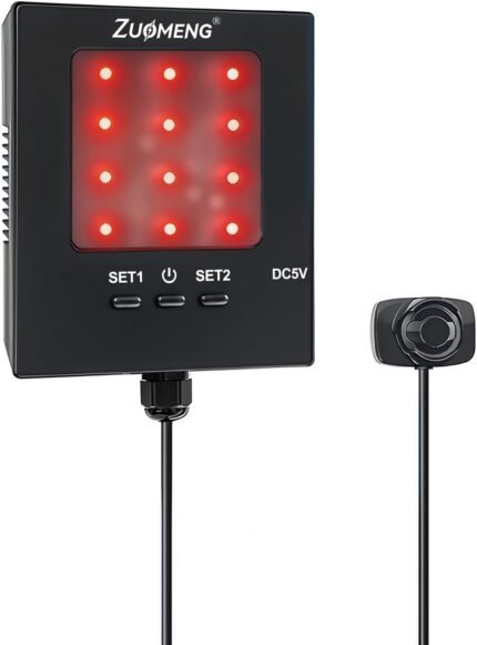Adjustable Garage Parking Sensor with Tri-Color LED Distance Indicator, Ultrasonic Detection & Auto/Manual Modes for Safe Indoor Parking