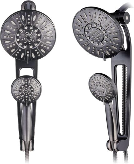 Price: (as of – Details) – HIGH-PRESSURE SPA LUXURY! Enjoy giant 6-setting 7″ overhead showerhead and matching 6-setting hand shower