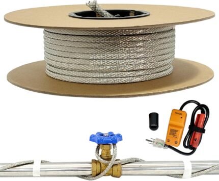 100′ HTM Braid Self Regulating Heating Cable Mobile Home Heat Tape Water Pipes Freeze Protection & Freeze Free Connector Kit – Plug and End Seal *1