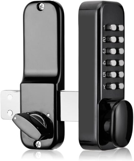 Keyless Gate Locks for Outdoor Fence, Mechanical Keypad Lock, Smart Lock for Outdoor Gate, Patio, Garage, Backyard, Bidirectional Install, Weatherproof Zinc Alloy (Black)