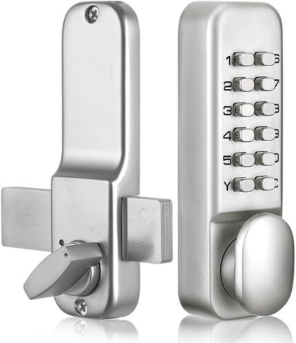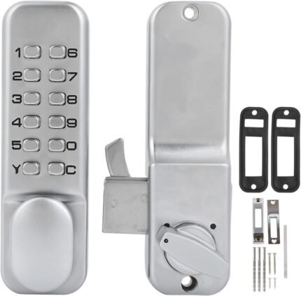 Keyless Gate Locks for Outdoor Fence, Mechanical Keypad Lock, Smart Lock for Outdoor Gate, Patio, Garage, Backyard, Bidirectional Install, Weatherproof Zinc Alloy (Silver)