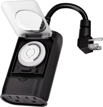K KASONIC – Outdoor Light Timer Outlet, 24 Hour Mechanical Switch, Heavy Duty Plug in Timer Waterproof with 2 Grounded Outlet, ETL Listed (Black)