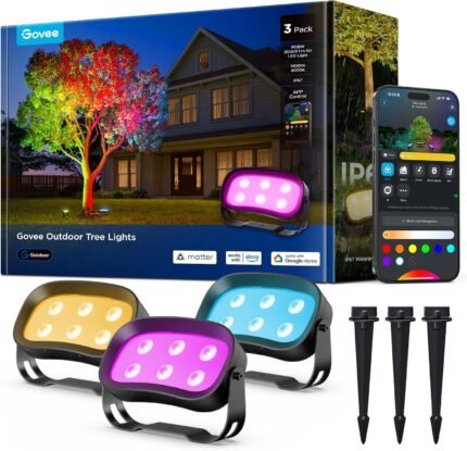 Govee Outdoor Tree Lights 3-Pack, RGBWIC LED Landscape Lighting, IP67 Waterproof, Outdoor Lights for Yard Patio Garden, 66 Scene Modes with App Control, Works with Alexa, Google Assistant, Matter