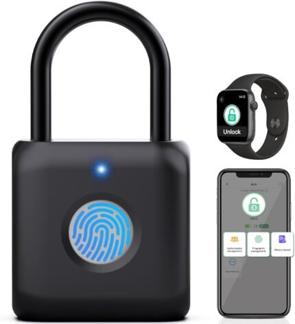 Pothunder Fingerprint Padlock, Smart Padlock, Locker Lock, Combination Lock, Fingerprint Lock with APP Unlock, USB Rechargeable, Suitable for Gym Locker, Door, Locker(Black)