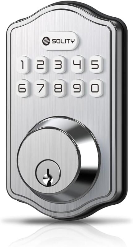 Solity Smart Digital Electronic Deadbolt Door Lock, Keyless Entry, Auto Lock, 100 Custom Codes, Easy Installation, Keypad for Front & Back Door, Residential & Commercial, AT1 (Satin Nickel)