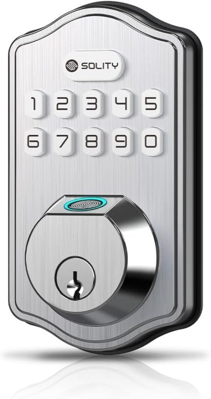 Solity Smart Digital Electronic Deadbolt Door Lock, Keyless Entry, Auto Lock, 50 Custom Codes & Fingerprints, Easy Installation, Keypad for Front & Back Door, AT10 (Satin Nickel)