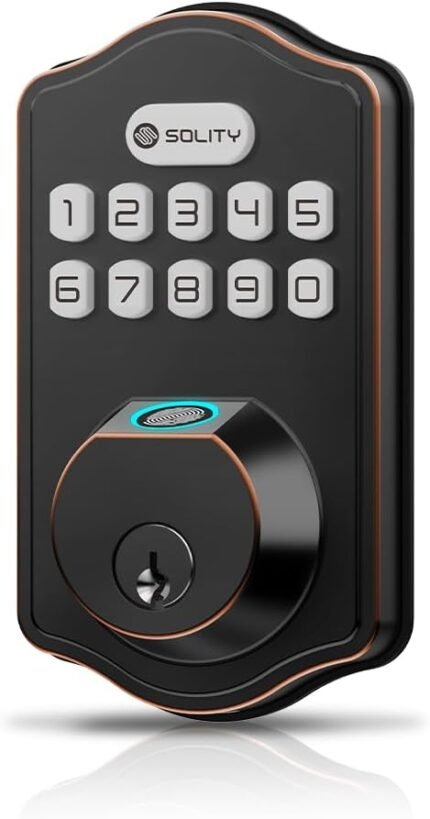 Solity Smart Digital Electronic Deadbolt Door Lock, Keyless Entry, Auto Lock, 50 Custom Codes & Fingerprints, Easy Installation, Keypad for Front & Back Door, AT10 (Oil Rubbed Bronze)