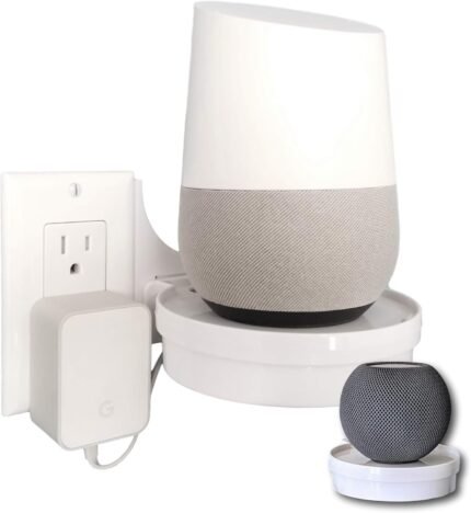 The Easy Outlet Shelf by Mount Genie – Works With All Outlets – 60 Second Install – Hidden Cord Cable Storage – Perfect Google Home Mount, Nest Wifi Mount, for Cameras, Voice Assistants, and More