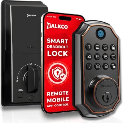 VALKCO Smart Door Lock V5O5BF, Keyless Entry Door Lock with Keypad and Bluetooth App Control, Fingerprint Deadbolt, Smart Door Lock for Front Door, Auto Lock, IP54 Weatherproof, Easy Installation.