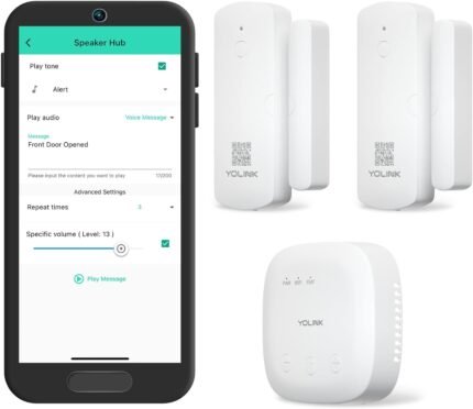 YoLink LoRa Smart Door Sensor Starter Kit: SpeakerHub Audio Hub & 2 Door Sensors – Up to 1/4 Mile Range, Door Left-Open Reminders, up to 5 Year Batteries, Alexa, IFTTT, Home Assistant