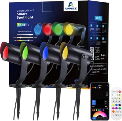 APPECK Smart Outdoor Spot Lights 24W, RGBCW Color Changing Landscape Lights 4 Pack, IP65 Waterproof Low Voltage Landscape Lighting, App/Voice/Remote Control, for Garden Yard Pathway Holiday Decor