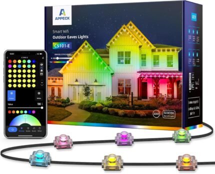 APPECK Permanent Outdoor Lights for House 100ft, Smart LED Eaves Lights with 75LEDs, IP65 Waterproof, 54 Scenes Modes for Christams, Holiday, Halloween, Party, Compatible with Aleax, Google Assistant