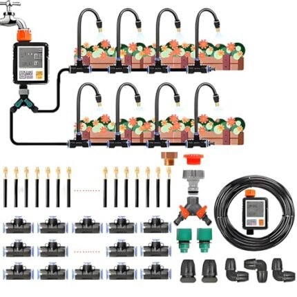 Automatic Drip Irrigation System Kit – Smart Garden Watering for Greenhouse, Lawn, Raised Beds & Flower Beds – Micro Misting Sprinkler with 30m Tubing & Adjustable Emitters