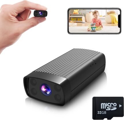 Mini Security Camera, HD Nanny Cam for Home – Smallest WiFi Wireless Cameras with Motion Detection App Control Night Vision, Portable Tiny Cam for Pet Baby Nanny Surveillance (Black Camera+32GB)