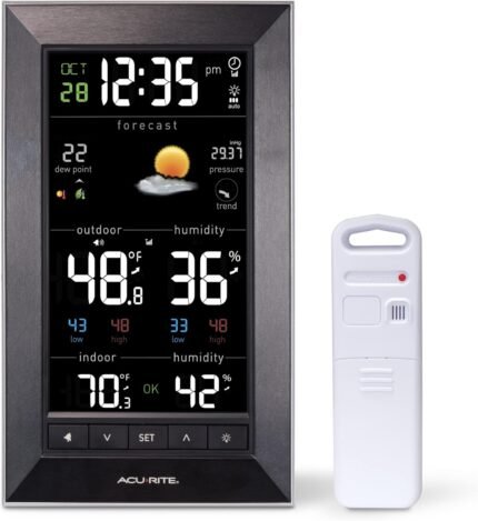 AcuRite Digital Vertical Weather Forecaster with Indoor/Outdoor Temperature, Humidity, and Date and Time (01121M) , BLACK