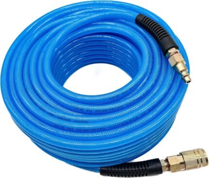 Polyurethane(PU) 1/4-Inch x 100FT Reinforced, Air Hose with 1/4” Swivel Industrial Quick Coupler and Plug, Bend Restrictor, Transparent Blue