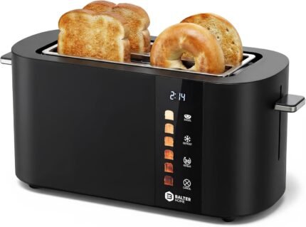 Toaster 4 Slice Wide Slot, Bagel Function, Long Slot, Stainless Steel, Touch Screen, Built-in Rack, Extra-Wide 1.5″ Slots for Thick Breads & Bagel, Timer, BPA-Free, Removable Tray, Black