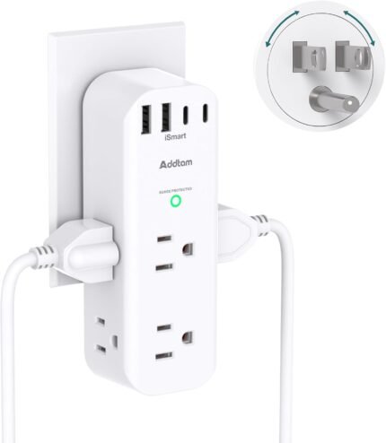 Surge Protector, Outlet Extender with Night Light, Addtam 5-Outlet Splitter and 4 USB Ports(1 USB C), Multi Plug Wall Outlet for Home Office Dorm Room Essentials