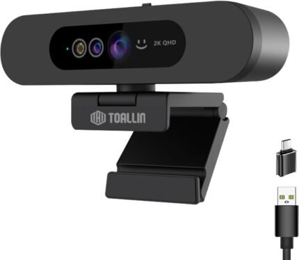 TOALLIN 2K QHD Webcam for Windows Hello Face Login, IR Facial Recognition Camera, USB Webcam with Microphone, 92° Wide Angle View, Computer Web Camera for Video Calls