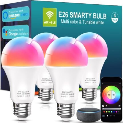 luckystyle Smart Light Bulbs, 9W A19 E26 800LM WiFi Bluetooth LED Bulbs Compatible with Alexa, Google Assistant & Home, 16 Million Colors Music Sync Color Changing Dimmable RGBWW Lights Bulb (4)