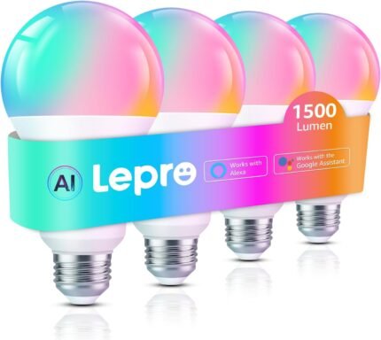 Lepro B3 AI Smart Light Bulbs – 1500LM 100W Equivalent A21 Bulb, WiFi & Bluetooth RGBWW Color Changing, Works with Alexa & Google Assistant, AI Voice Control by App, Music Sync, 2.4GHz Only (4 Pack)