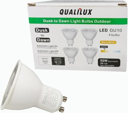 MR16 GU10 Dusk to Dawn Light Bulbs, Warm White 3000K, 50W Equivalent, 500LM, Auto On/Off Light Sensor Bulb, Non-dimmable, LED 6W 4 Pack, HQ-H044