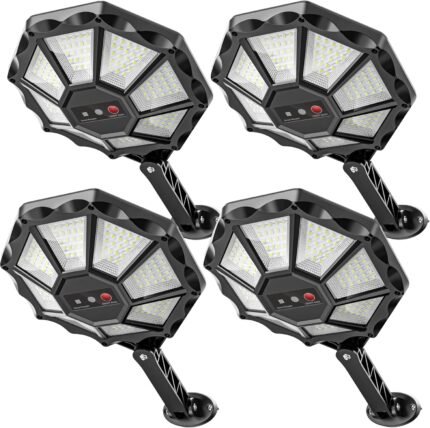 Solar Lights Outdoor for Outside, Waterproof Solar Street Lights Outdoor, 6500K Dusk to Dawn Security Flood Lights Motion Sensor with Remote Control for Yard, 4 Pack