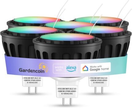 Gardencoin MR16 LED Bulb Color Changing, RGBCW Smart GU5.3 LED Bulbs Dimmable, 6W 12V Bi-Pin Base, Spotlight Bulbs Replacement for Halloween & Christmas Outdoor, WiFi Bluetooth Control (6 Pack)