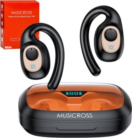 MUSICROSS Ai Translation Earbuds Real Time 144 Language Translator Earbuds Audifonos Traductores Inglés Español 4 in 1 Translator Device with 9 Working Modes for Travel Business Learning Orange