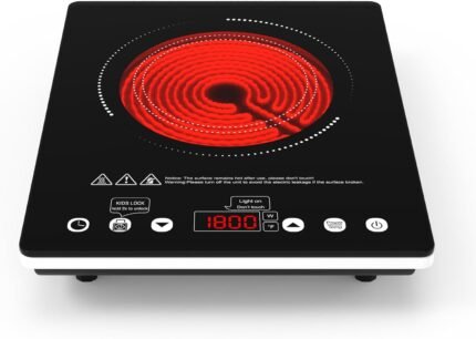 Portable Electric Cooktop, 1800W Single Burner Electric Stove with Touch Control, Child Safety Lock, Timer, 9 Power Level, Overheat Protection, Compact Induction Cooktop for Home Dorm Office