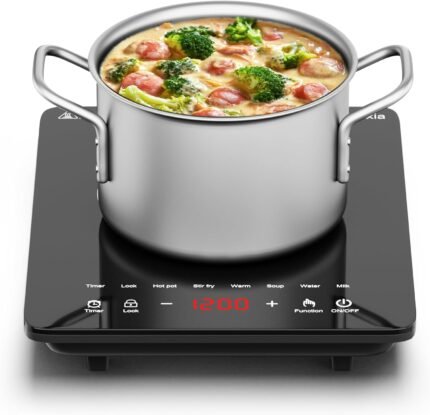 Portable Induction Cooktop 1800W Countertop Burner with 20 Temp/Power Settings, Child Lock & Turbo Cooling – 6.9″ Sensor Coil, Hot Pot Mode, RV/Camping Safe Cooker for Dorm RV Kitchen (Black)