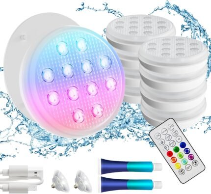 Pool Lights, Rechargeable Submersible LED Lights, IP68 Waterproof Floating Lights with Remote, 16 Color Changing Underwater Lights with Magnet, Suction Cups for Pool, Bath, Hot Tub (8 Pack)