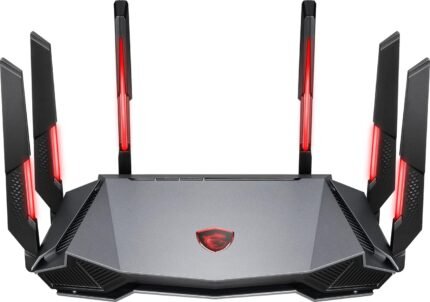 MSI Radix AXE6600 WiFi 6E Tri-Band Gaming Router, AI QoS, RGB, 1.8GHz Quad-Core Processor, MU-MIMO, Gigabit Wireless, 8-Stream, High Speed Long Range
