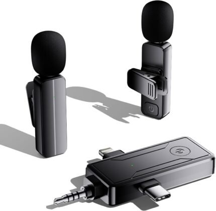 2 Pack Wireless Mini Lavalier Lapel Microphone for iPhone,Android Device(3 in 1) – 65ft Cordless Clip on Dual Mics with Noise Reduction 6H Working Time for Video Recording Vlogging, YouTube, Interview