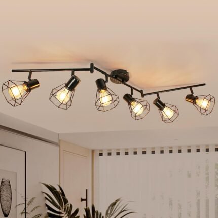 HiBay 6-Light Track Lighting, Directional Rotatable Ceiling Light Fixture, Black Farmhouse Track Spotlight for Kitchen, Bedroom, Living Room, E26 Base (Bulbs Not Included)