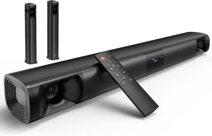 Sound Bar for Smart TV, 80W Soundbar with Bluetooth/ARC/Opt/AUX Connect, Dynamic Volume Boost, 3 Equalizer Modes, 2 in 1 Detachable Soundbar for TV/PC/Gaming/Projectors