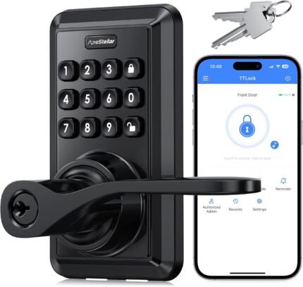 Smart Wi-Fi Door Lock with Handle – Keyless Entry Door Lock for Front Door – Door Lever with Code – APP Remote Control – No Hub Required – Auto Lock – Easy Installation-Matte Black