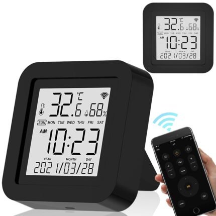 Smart WiFi Temperature Humidity Monitor, TUYA Wireless Temperature Humidity Sensor with APP Notification Alerts & IR Intelligent Remote Control, Compatible Alexa and Google Home (Black)